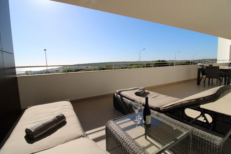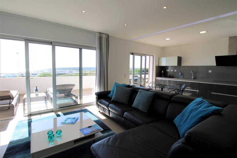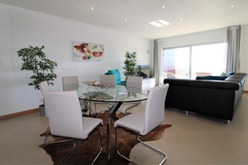 Combining style and comfort, this luxury apartment is finished and furnished to an excellent standard and is a wonderful base for your holiday in Lagos. Enjoying sea views from the moment you enter and from every room of the property, the best views are to be had from the balcony which runs the full length of the apartment and has a large outdoor dining table and 2 top of the range sun-loungers.