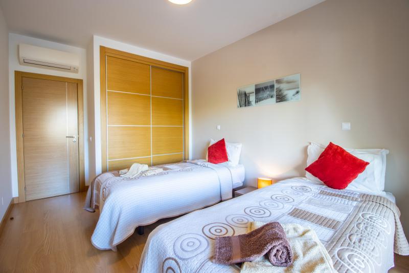 Second bedroom, twin beds with separate bathroom with shower cubicle and W/C.