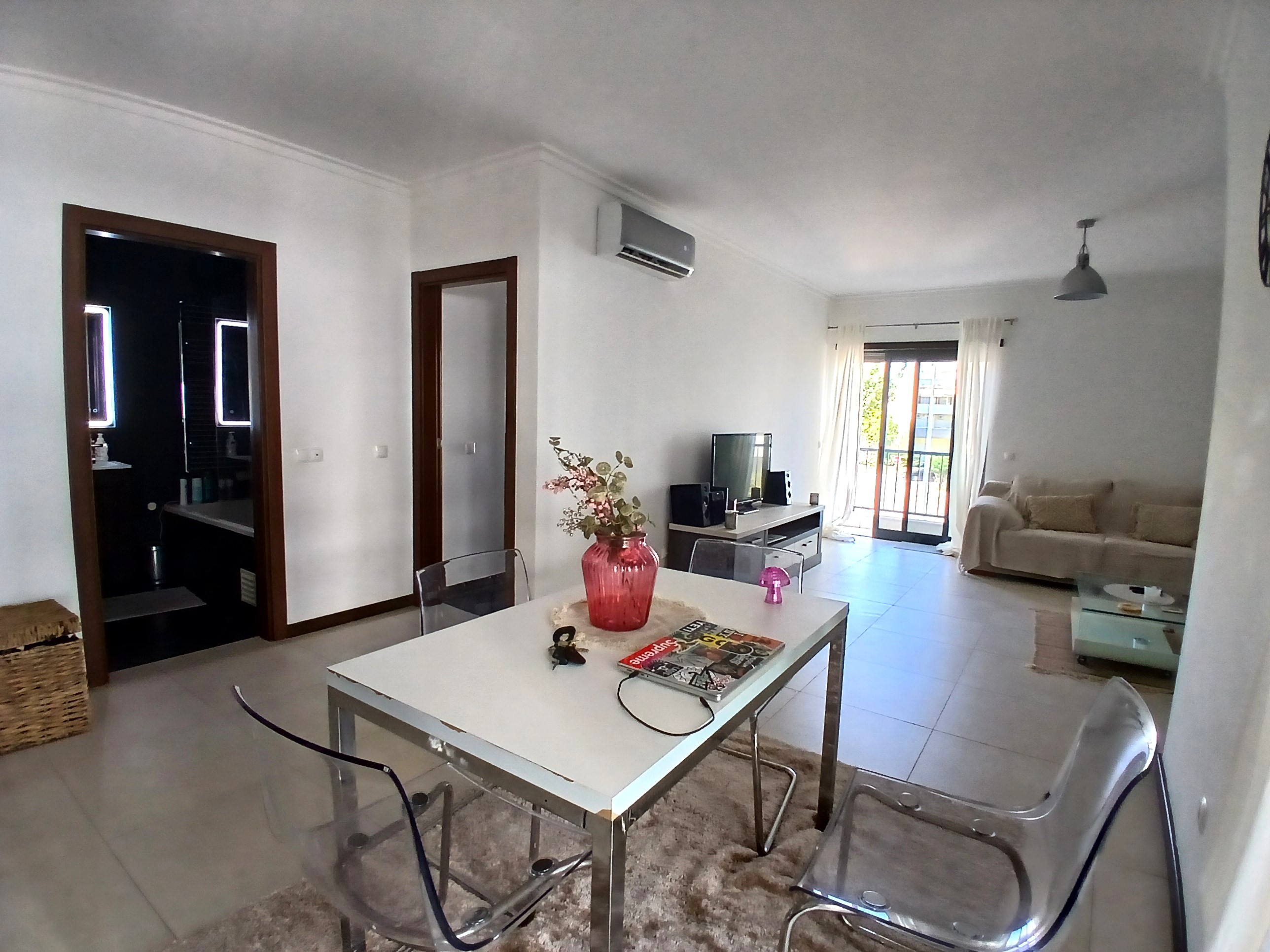 Discover the perfect blend of comfort and modern living in this accommodating one-bedroom apartment located between the picturesque Lagos Marina and the beautiful Meia Praia beach. The open plan living and dining area benefits the natural light, creating a welcoming atmosphere that invites relaxation and enjoyment. With access to two private balconies, you can saver your morning coffee or unwind with an evening drink while soaking in the serene surroundings.