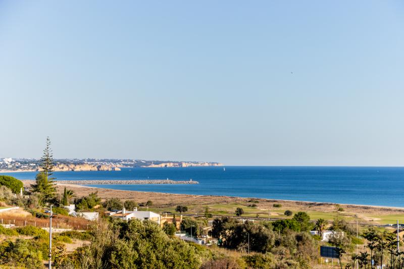 The resort benefits from 2 swimming pools, reception and mature gardens and has amazing sea views as it sits on a hillside looking out to sea close to Meia Praia in Lagos.
