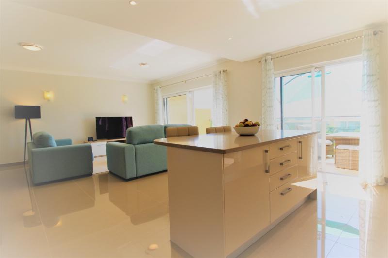 A highlight of the property is the superb south-east facing balcony with comfortable dining furniture and outstanding views of the golf, ocean, and Lagos bay.