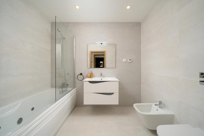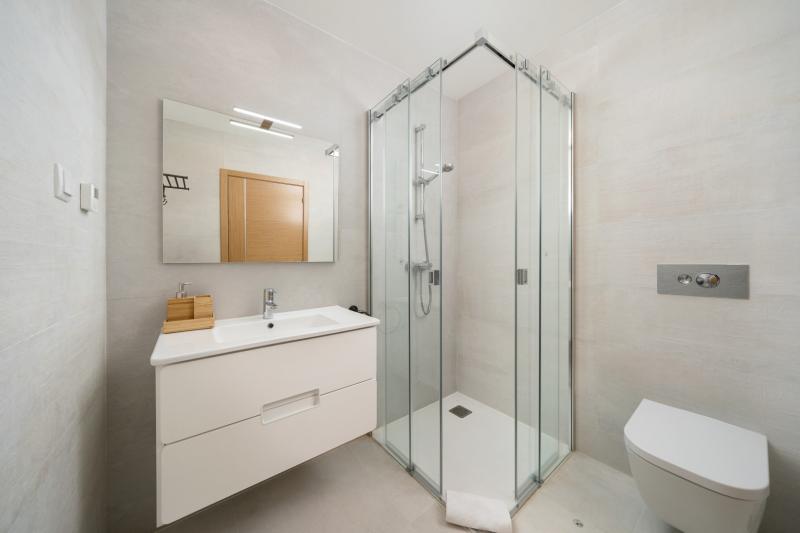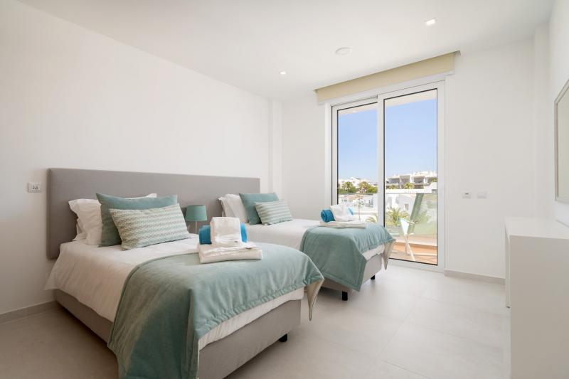 The master bedroom has a double bed and en-suite bathroom. There are 2 further bedrooms, 1 king, 1 twin, and a family shower-room. All bedrooms have direct access to a second balcony, which runs the full length of the apartment.