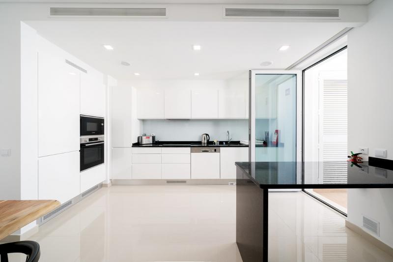 This spacious, modern apartment is tastefully furnished throughout and has an open plan living-dining-kitchen area, which is light and airy. The kitchen is fully equipped with top of the range appliances, including washing machine, oven, hob, dishwasher, microwave and fridge-freezer.