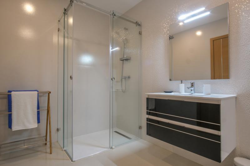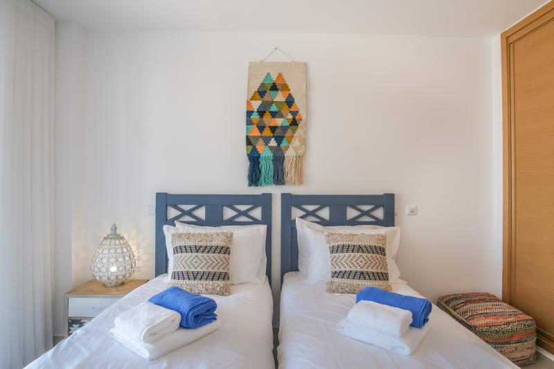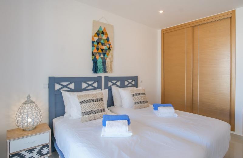 Sleeping 6 people in comfort in 3 good-sized bedrooms. The master bedroom has a king-sized bed, dressing table and en-suite bathroom with jacuzzi bath, the other 2 bedrooms each have 2 single beds, one of them has a workspace and they share a shower-room. All of the bedrooms open onto a 2nd balcony which overlooks the pool area.