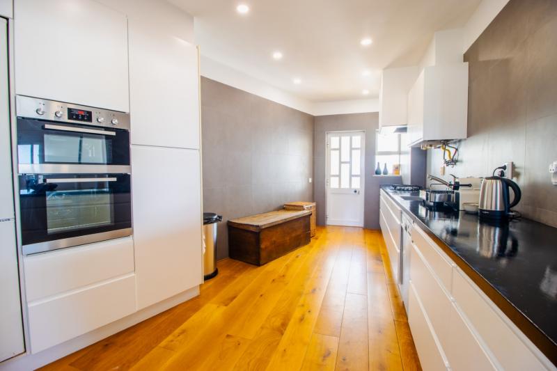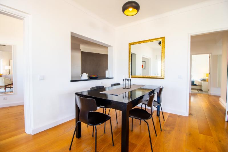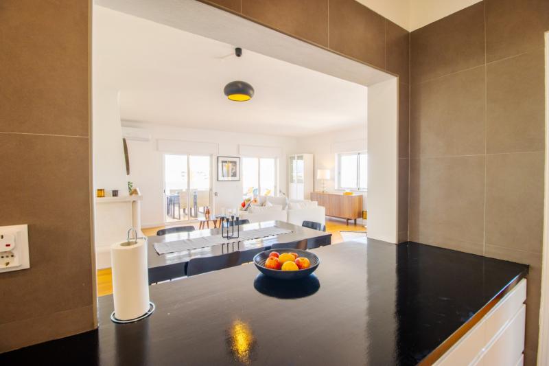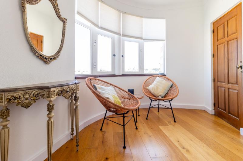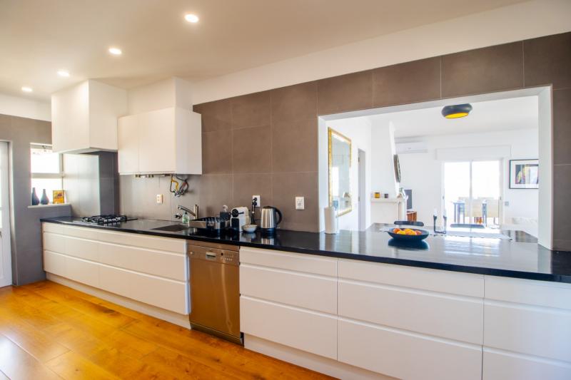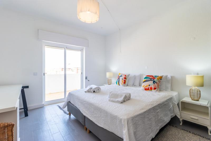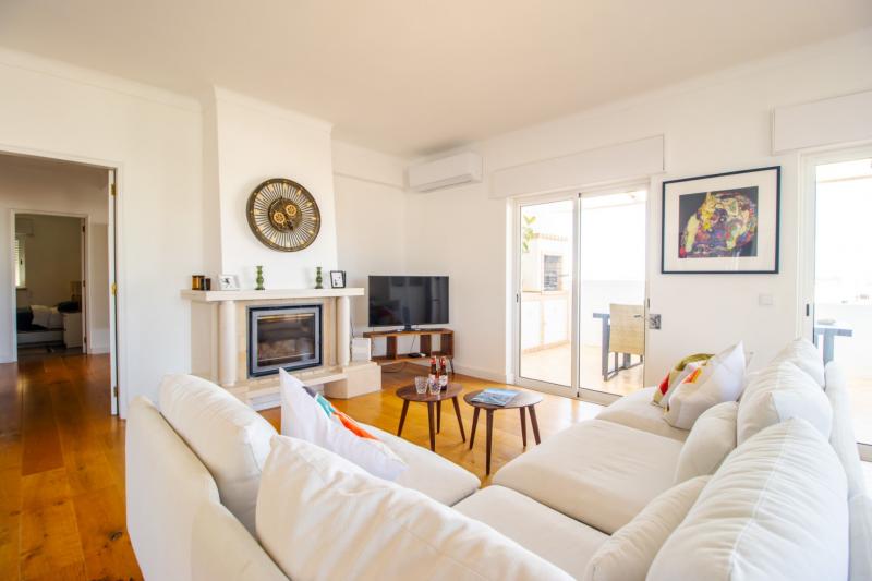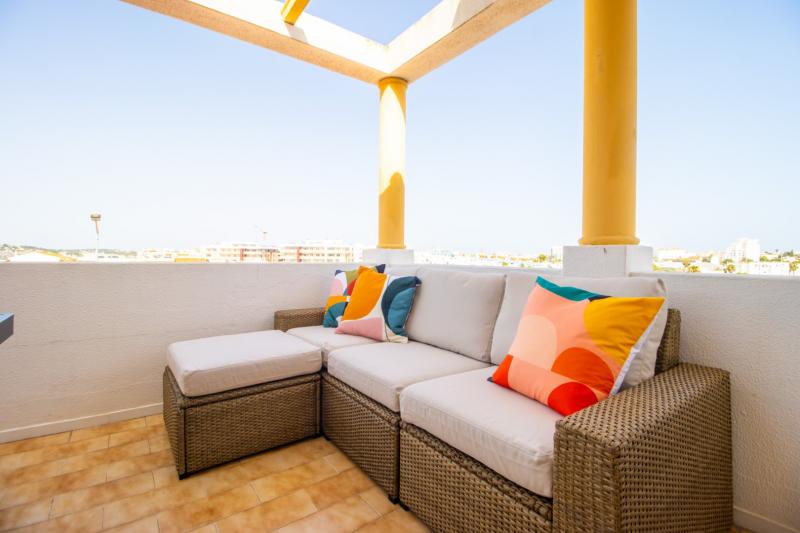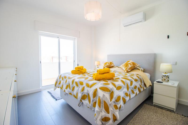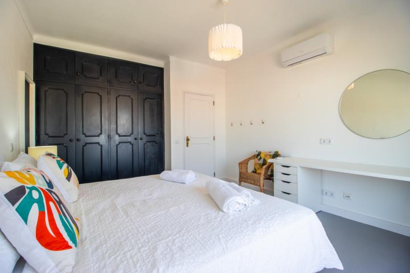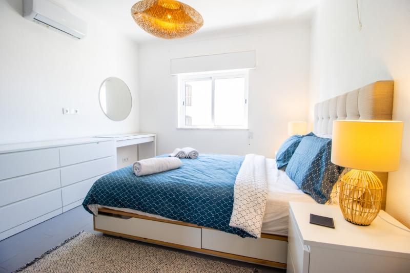 This beautiful apartment is filled with natural light and has wonderful views over the skyline of Lagos. The owners succeeded in refurbishing this apartment into a modern and comfortable holiday home, while still keeping some original unique features such as the wooden built-in wardrobes, round shaped windows and fireplace. The generous open plan living and dining area has sliding doors onto the spacious balcony with a charcoal BBQ, dining table and outdoor sofa. The fully fitted and equipped kitchen links directly with the dining area through the bar window. In the kitchen you can find built-in appliances such as fridge/freezer, gas stove, oven, microwave, Siemens dishwasher and Nespresso coffee machine.
