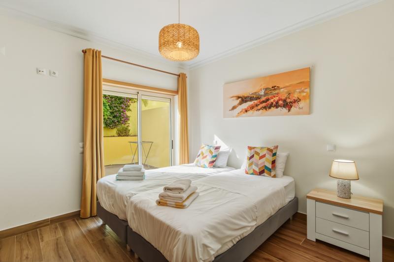 In the heart of Lagos is this hidden gem - modern and beautiful 2 bedroom apartment with a large ground floor patio with comfortable seating, sun-loungers and a BBQ, set in the resort complex of Pateo do Convento.