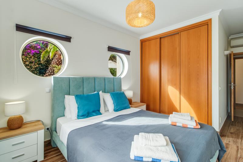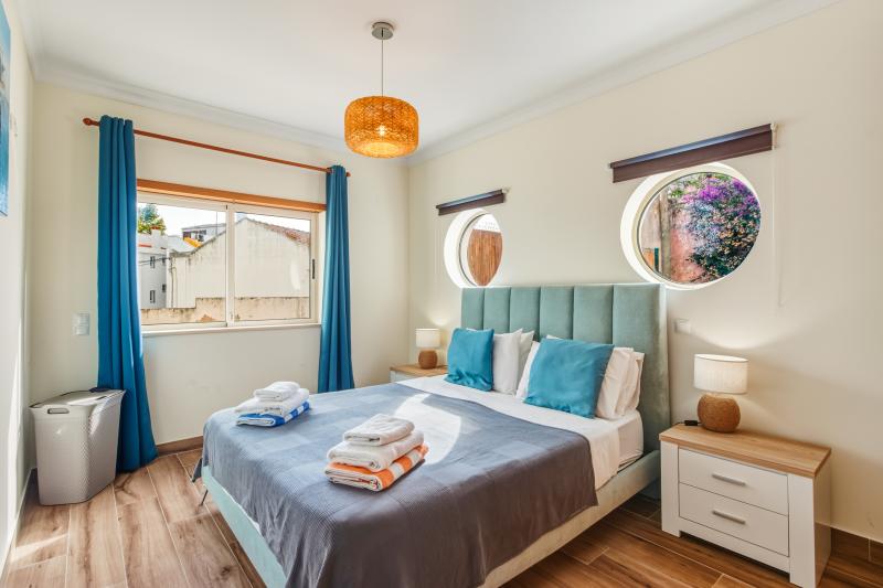 The highlight of this unique apartment is the private large outdoor patio with a BBQ, outdoor table and chairs and sun-loungers. Enjoy one of the best private patios in Lagos! This space benefits from shaded & sunny areas perfect to escape the summer heat yet it receives plenty of sun in winter. The lounge with the dining area benefits of a large brand-new L shaped couch, wall mounted smart TV with complimentary movies. A Bluetooth radio and speaker is also provided for your entertainment. Modern designer kitchen with fridge, coffee machine, juicer, pots & pans and everything you need to cook with. There is also a dishwasher & washing machine. From the lounge and kitchen you can access a small side enclosed patio that features a coal BBQ and small table and chairs.