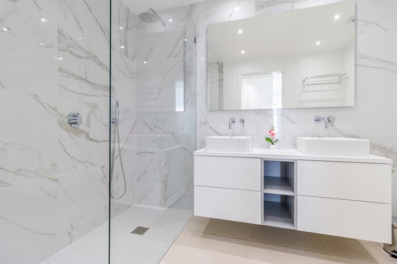 The master double bedroom features a built-in wardrobe and en-suite bathroom with a convenient walk-in shower, offering privacy and convenience. The second twin bedroom has an adjacent shower room accessible from the hallway.