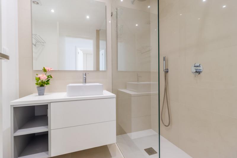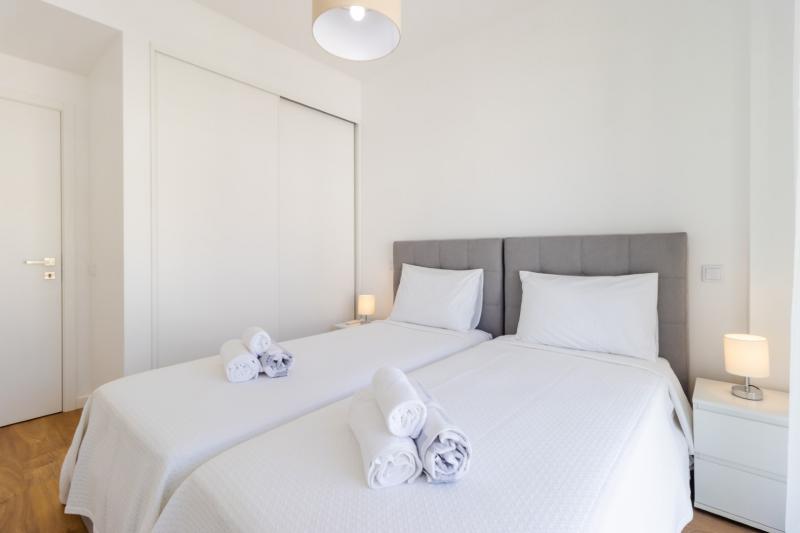 The apartment is equipped with electric window blinds, a smart cable TV, high speed Wi-Fi and air conditioning.