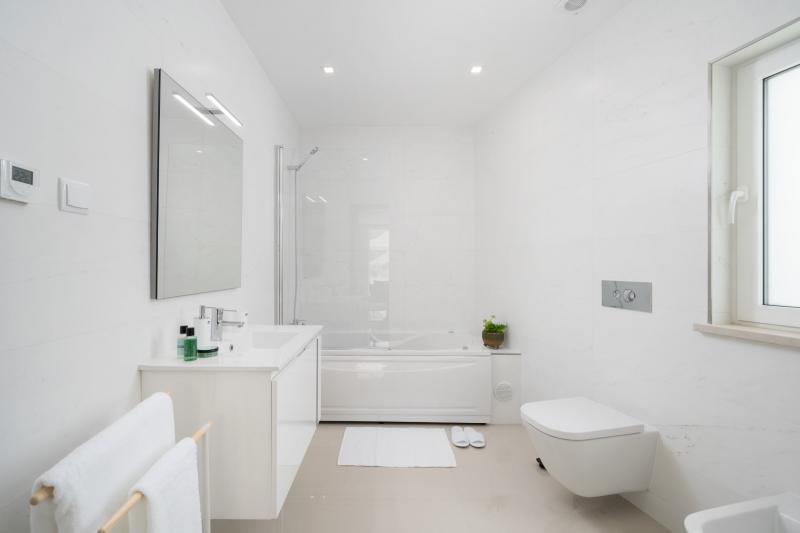 The kitchen is fully equipped with brand-new, stylish appliances, including a fridge, microwave, oven, freezer, induction hob, dishwasher, coffee machine, toaster, and kettle. You’ll find everything you need to prepare your meals, from tableware and cutlery to pans and various kitchen utensils.