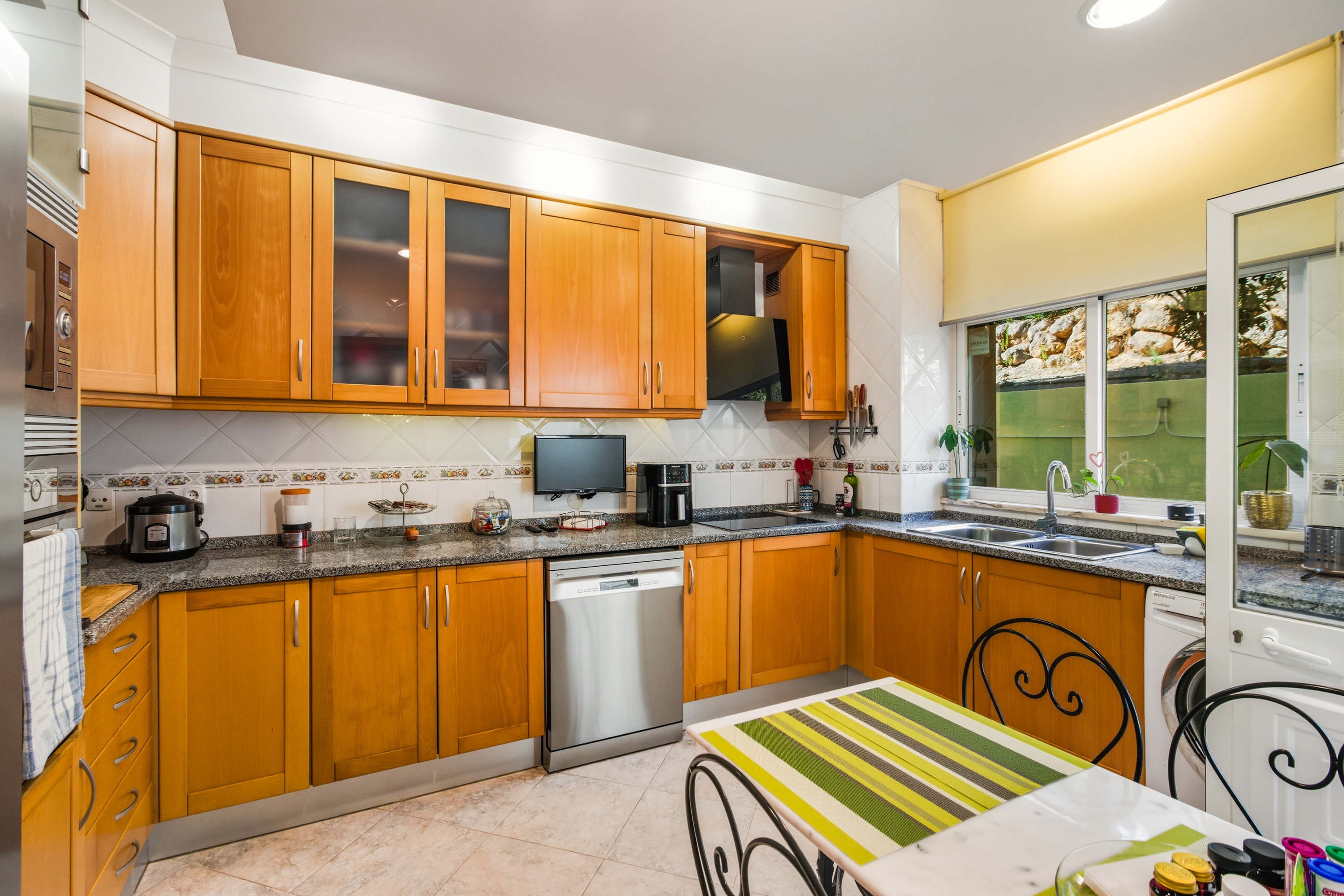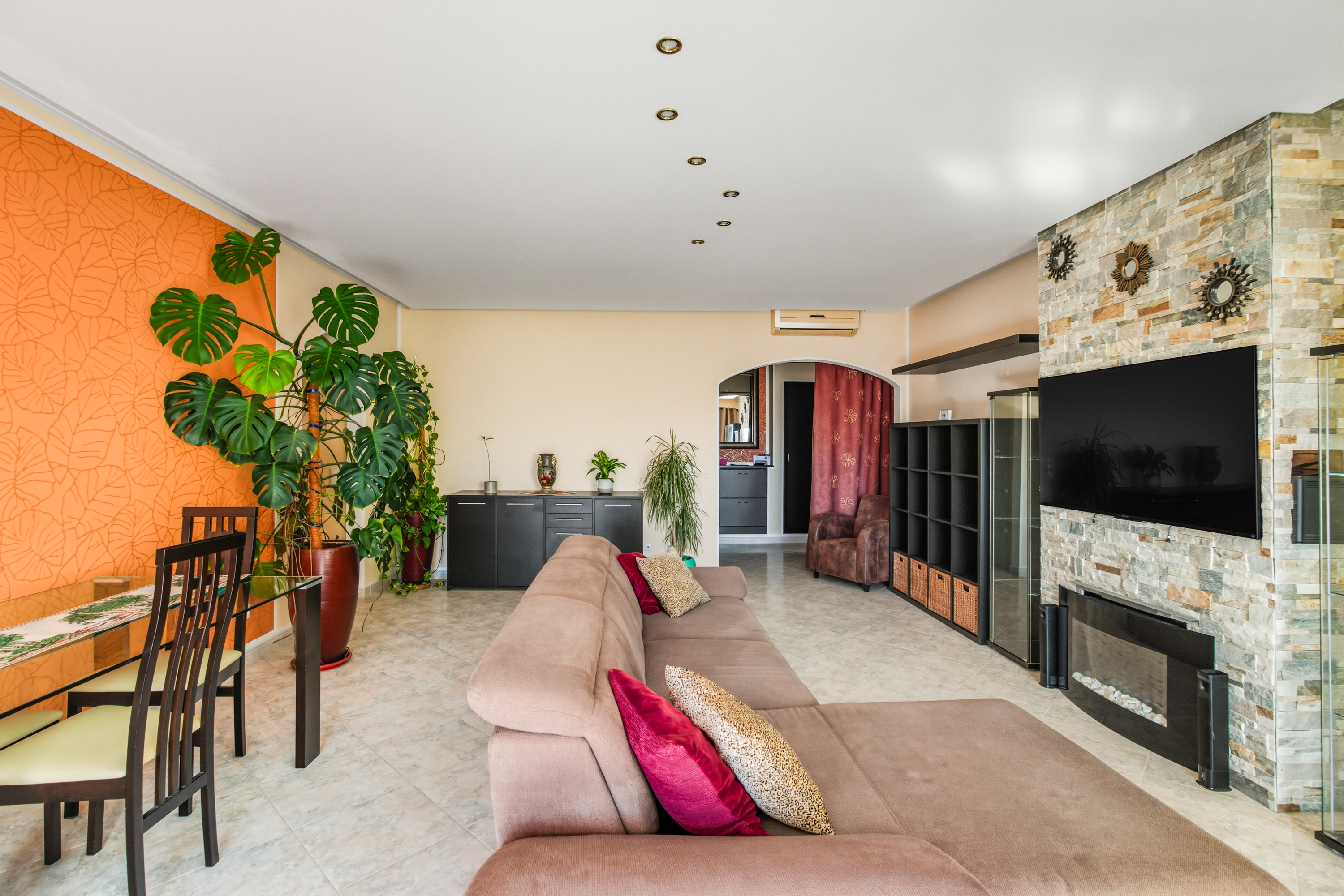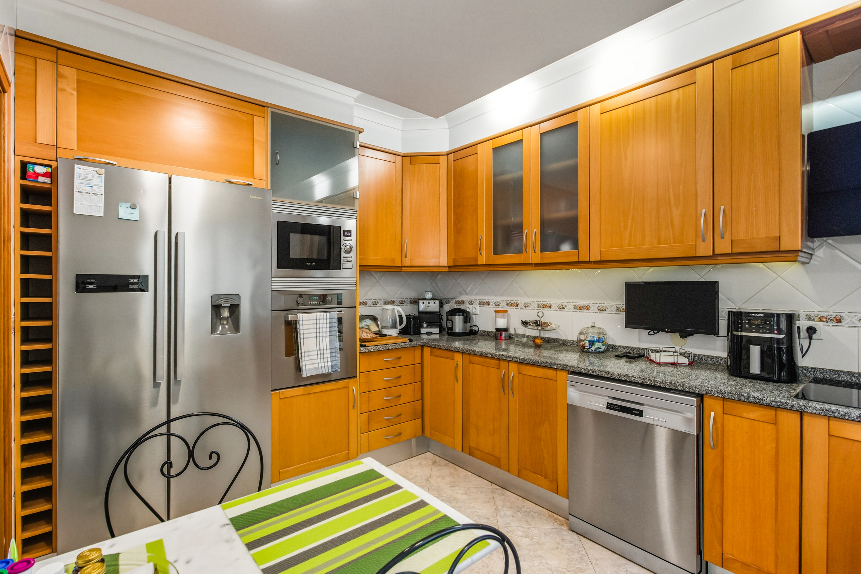 The fully equipped kitchen features modern appliances, including a dishwasher, washing machine, oven, microwave, and an American fridge. A closed veranda adds extra storage or utility space, enhancing practicality. With three comfortable bedrooms, including one with an en-suite bathroom, this apartment is designed for relaxation. A second full bathroom ensures convenience for all residents.
