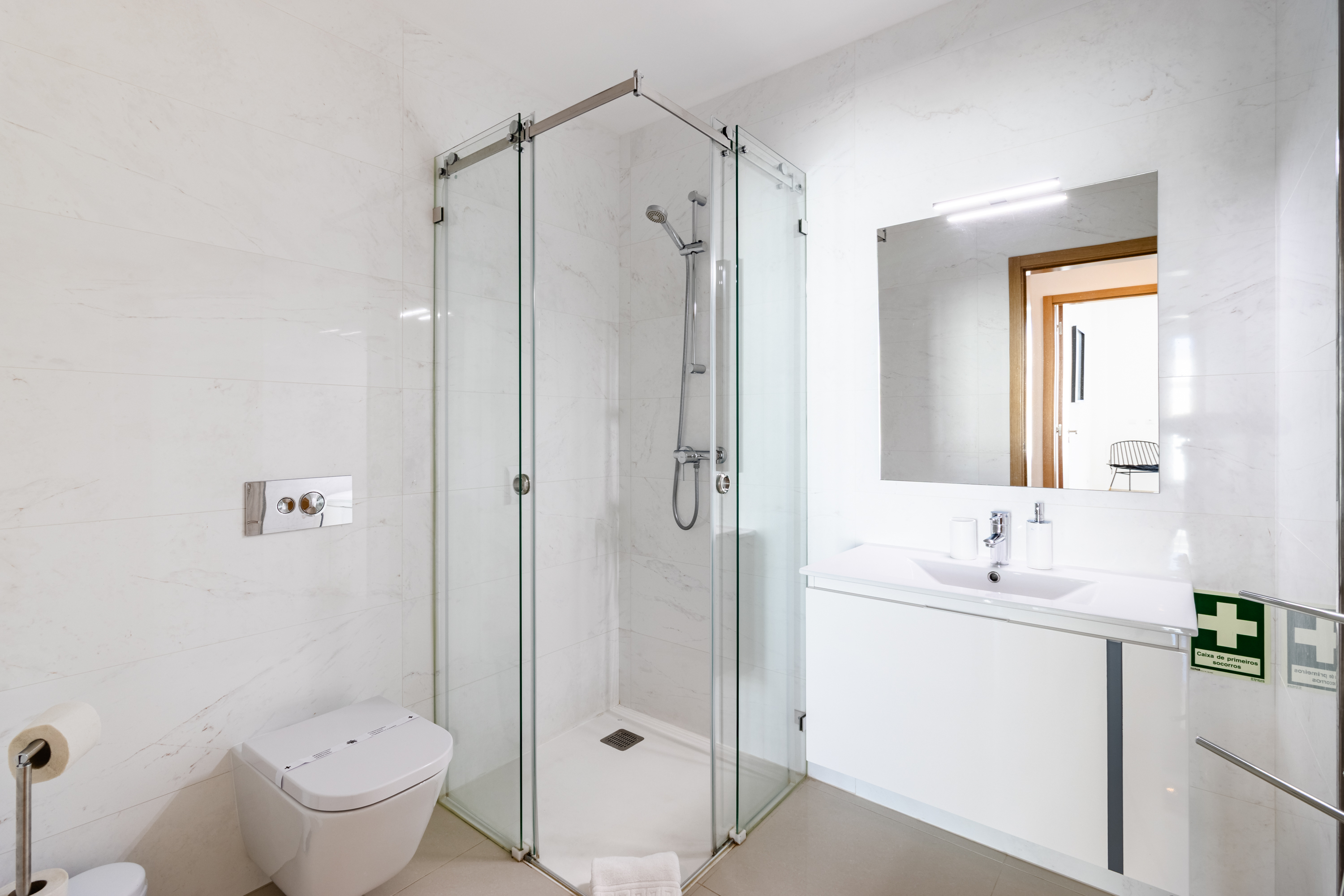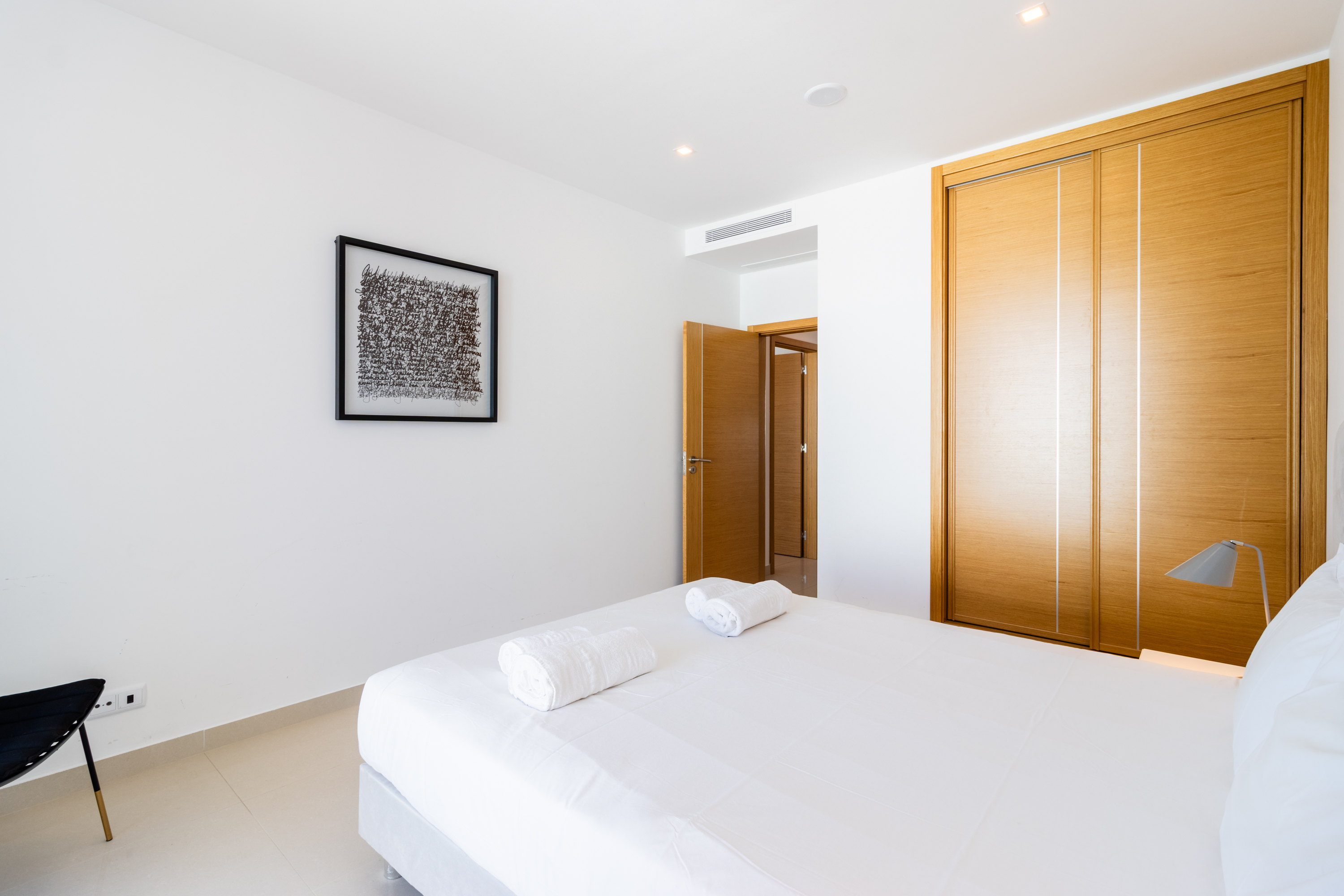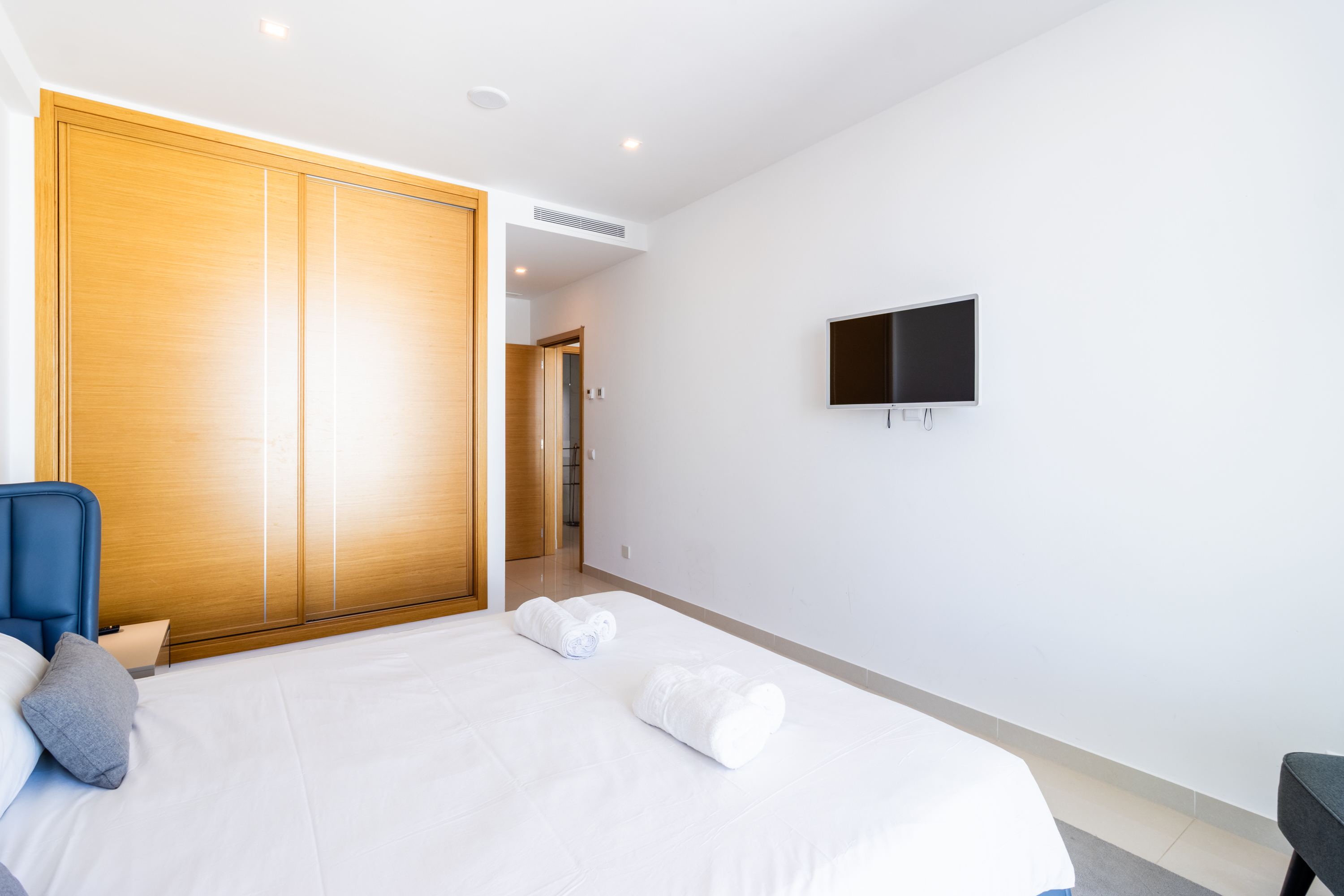 Both stylish and comfortable bedrooms open onto a second private balcony, where you can unwind with an afternoon drink while enjoying peaceful views of the pool. The master bedroom features a TV and a sleek en-suite bathroom, while the second bedroom is serviced by a separate bathroom conveniently located in the hallway.