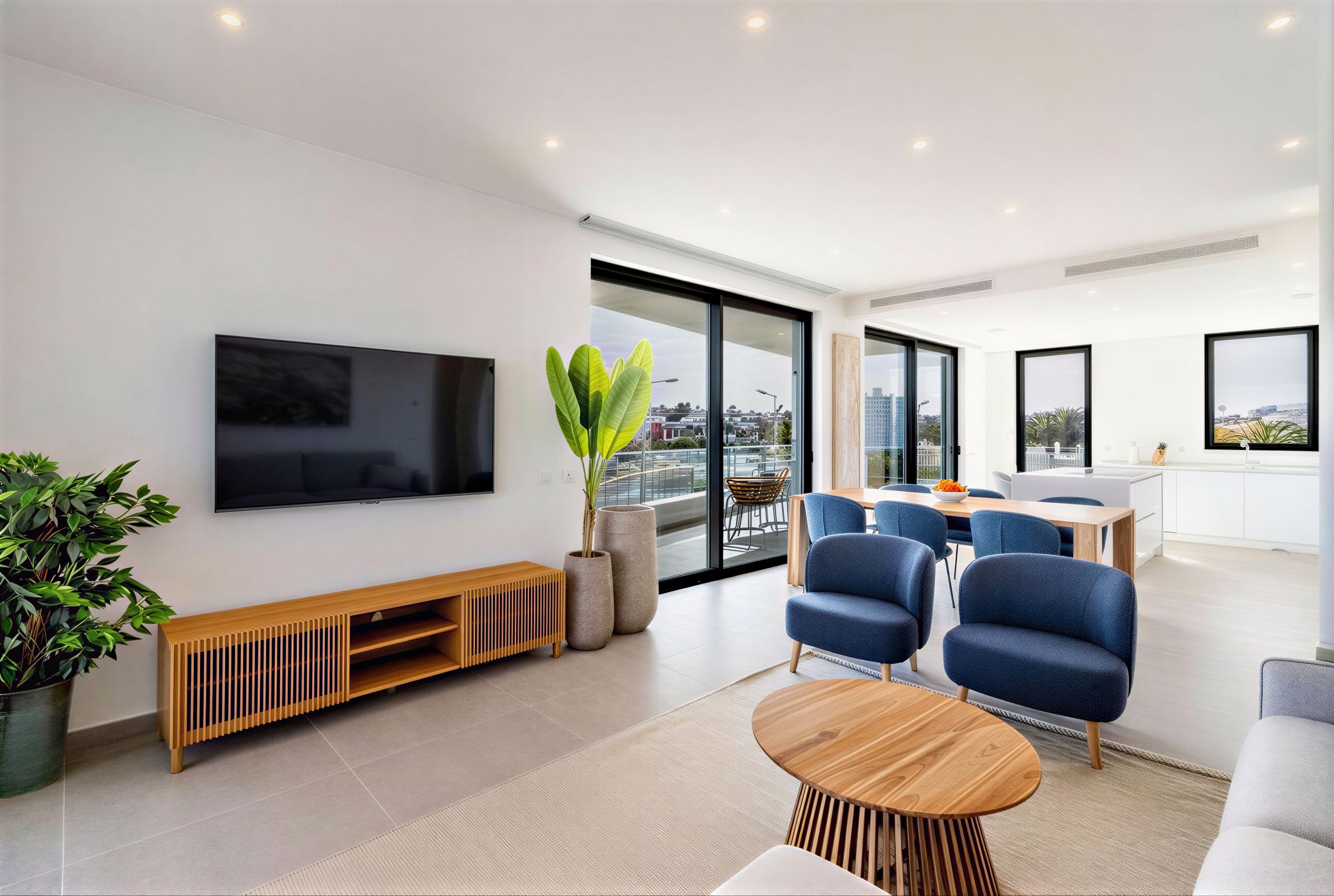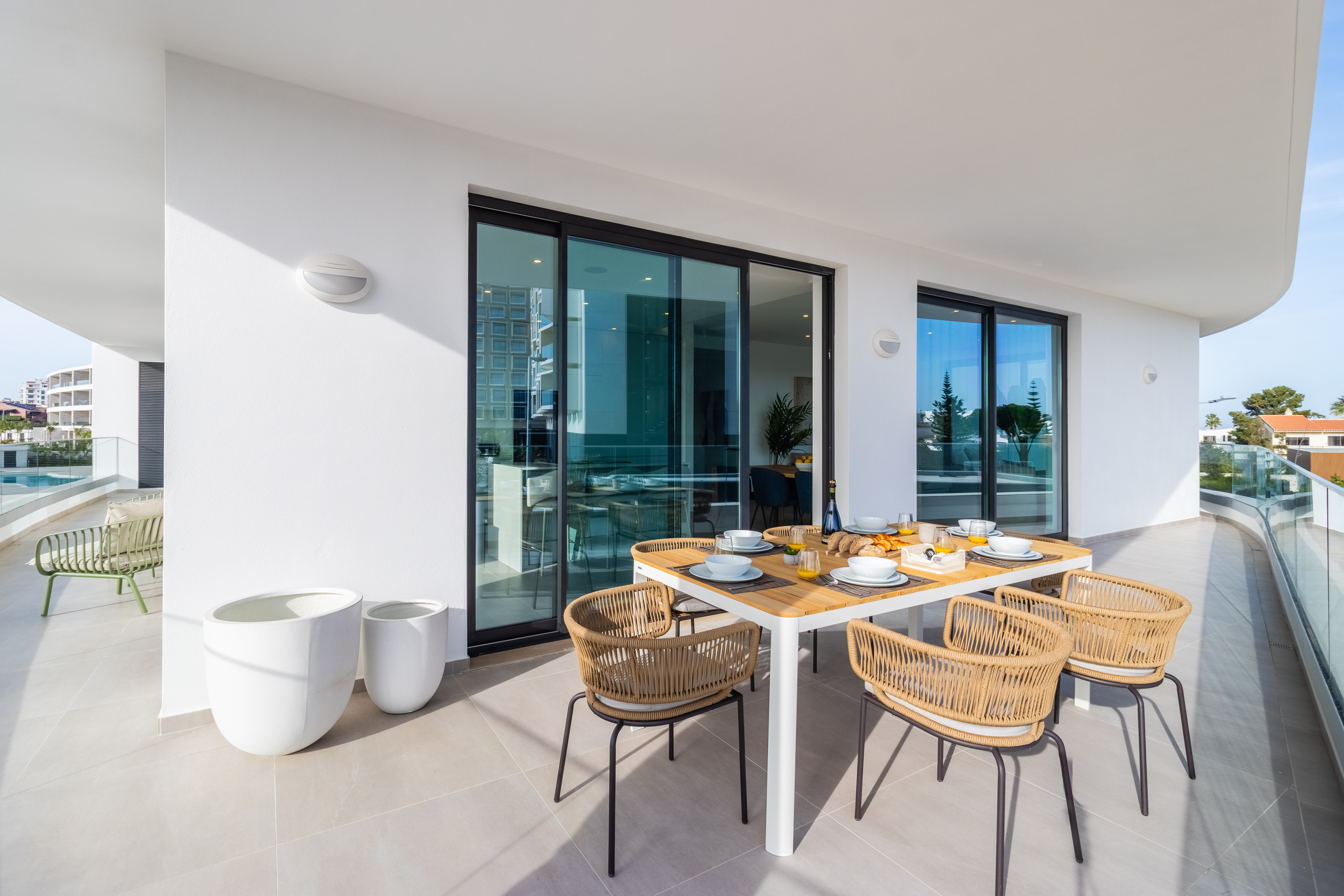 Flooded with natural light, the apartment enjoys sun exposure on three sides, with three private terraces designed to maximise every moment of the Algarve sunshine—from sunrise to sunset.