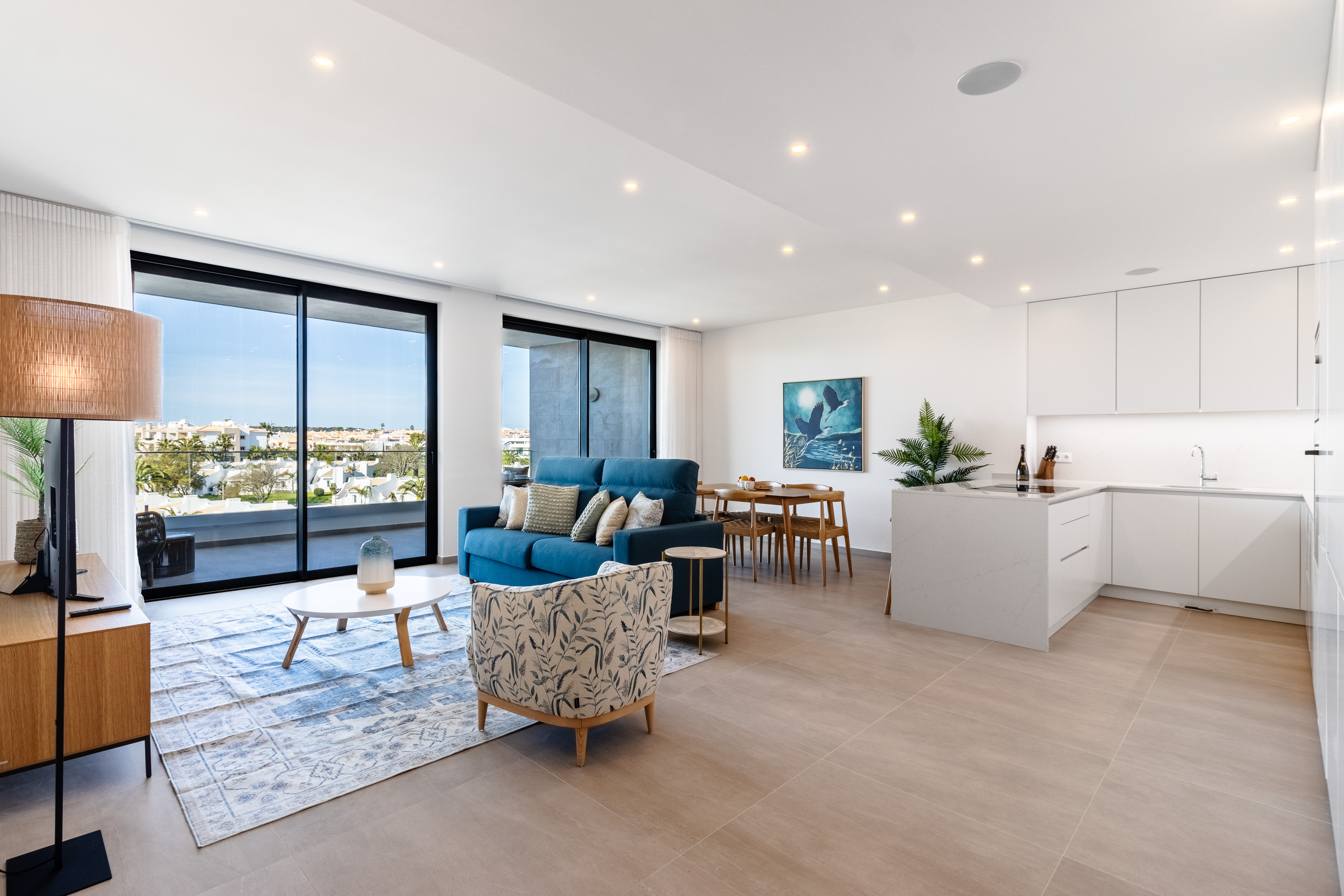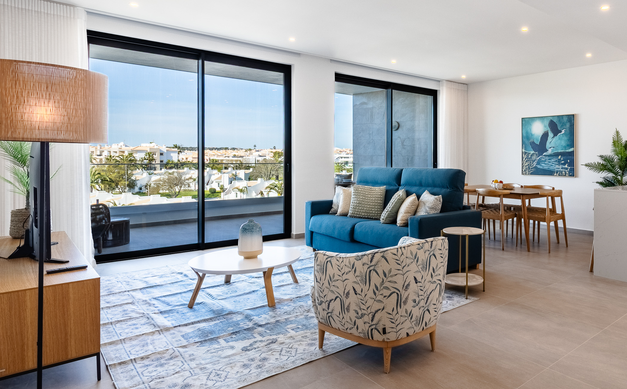 Inspired by the Algarve’s rich birdlife, the owners have thoughtfully decorated the apartment with fresh, bright colours and elegant design elements, creating a sophisticated yet welcoming atmosphere. High-quality furnishings and premium finishes are found throughout the home.