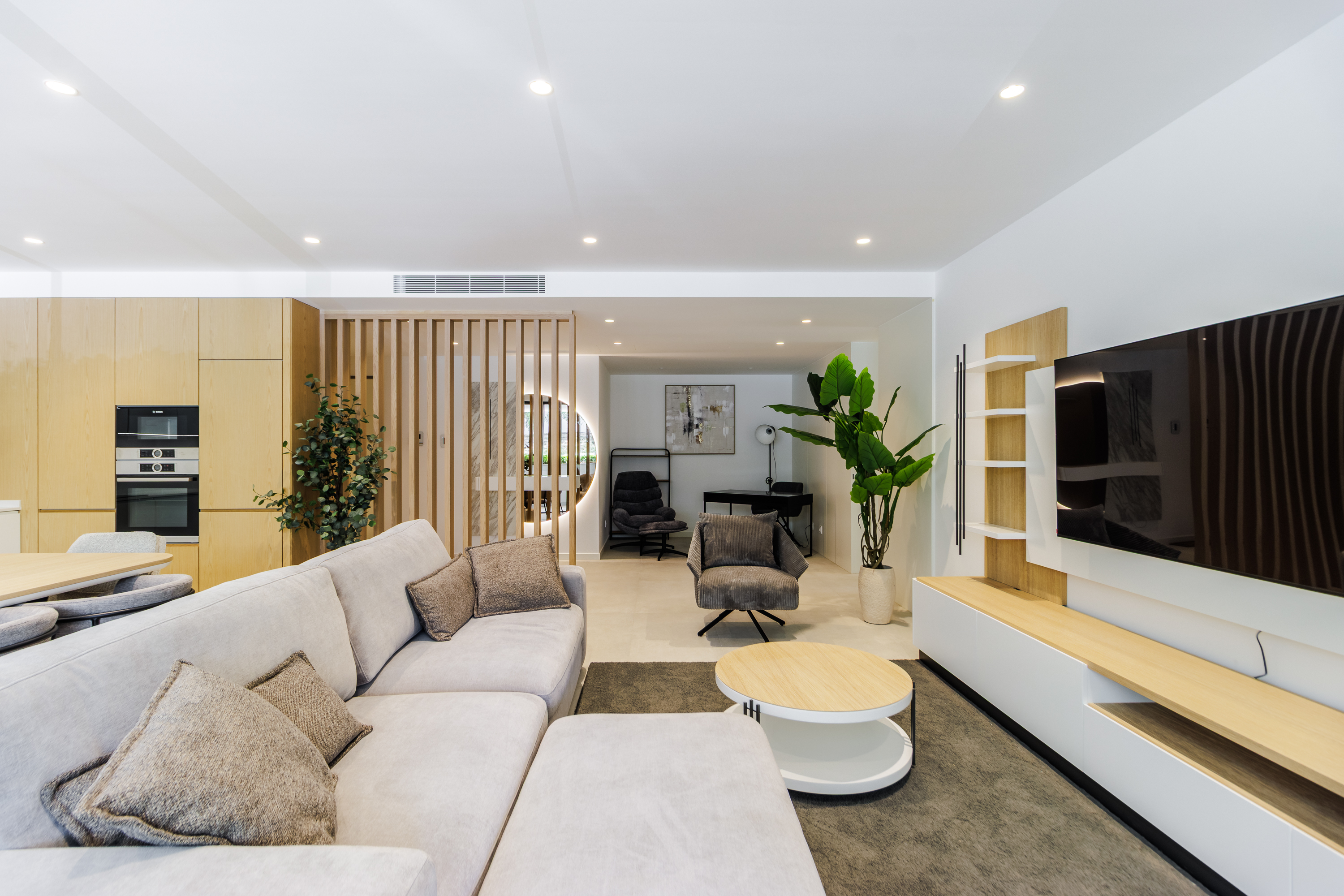 The living areas and balconies are incredibly large. And all apartments offer fully installed air conditioning, underfloor heating, solar panels for hot water, Smart Home Systems, high speed Fibre internet, and double glazed windows with electric roller blinds. And the energy rating is set to be A+.