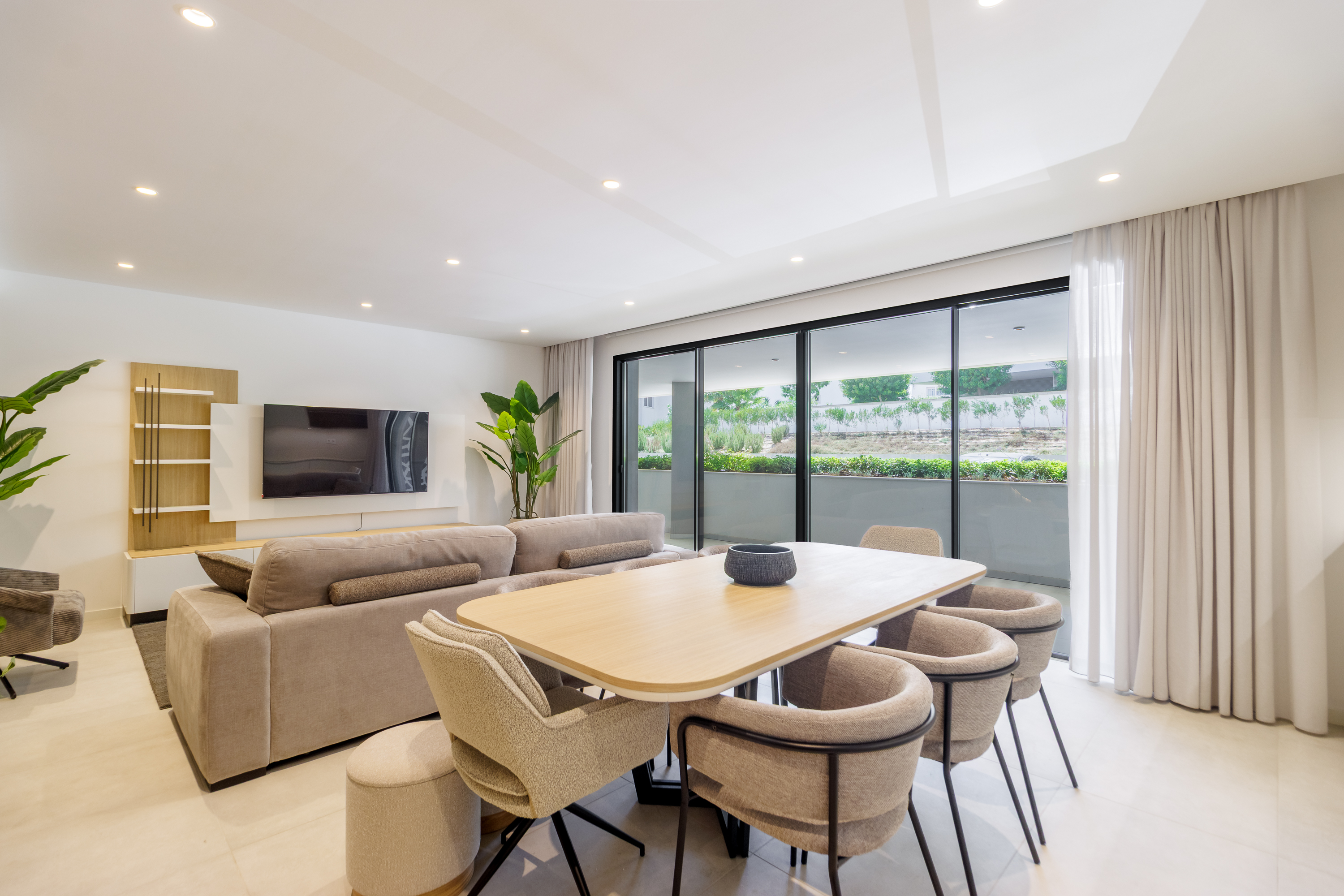 The design and finish are sleek and contemporary, with large terraces and special emphasis on indoor-outdoor living.