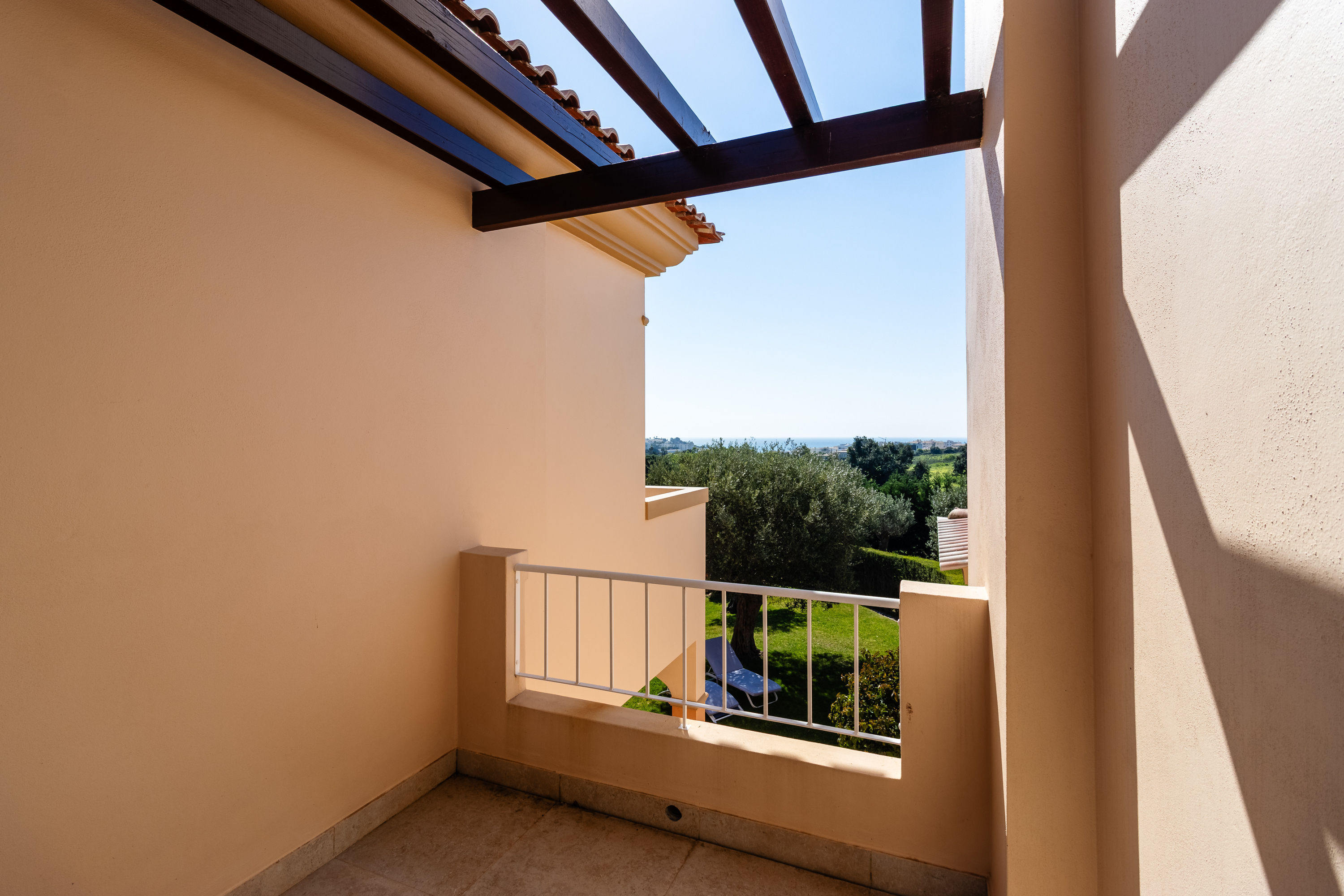 Upstairs, there are two additional bedrooms. Both rooms benefit from south-facing balconies with lovely sea views. A family bathroom with a Jacuzzi bath completes the upper floor.