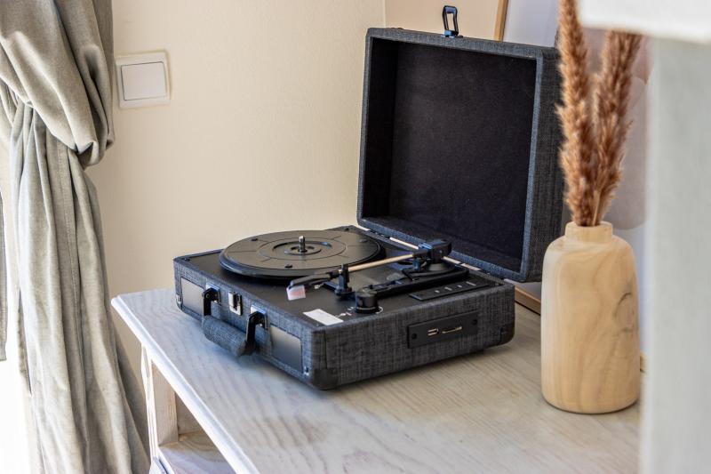• The cozy lounge is perfect for relaxing, with comfortable sofas, a Smart TV, and even a vintage gramophone for music lovers.