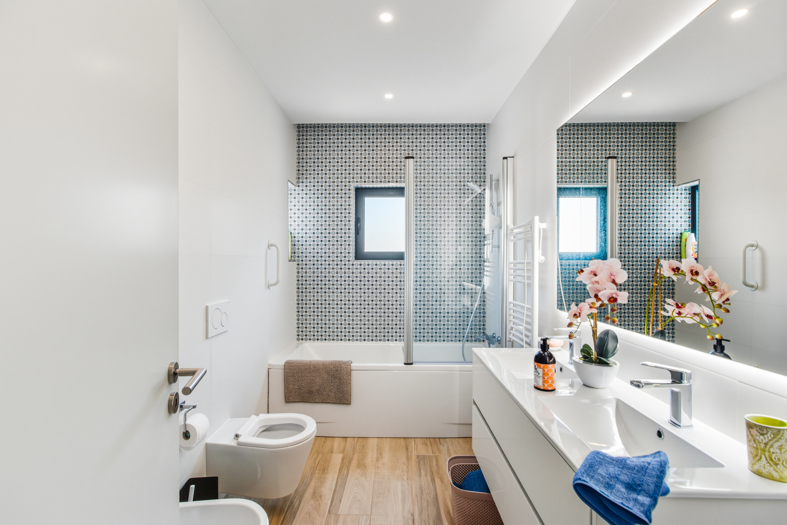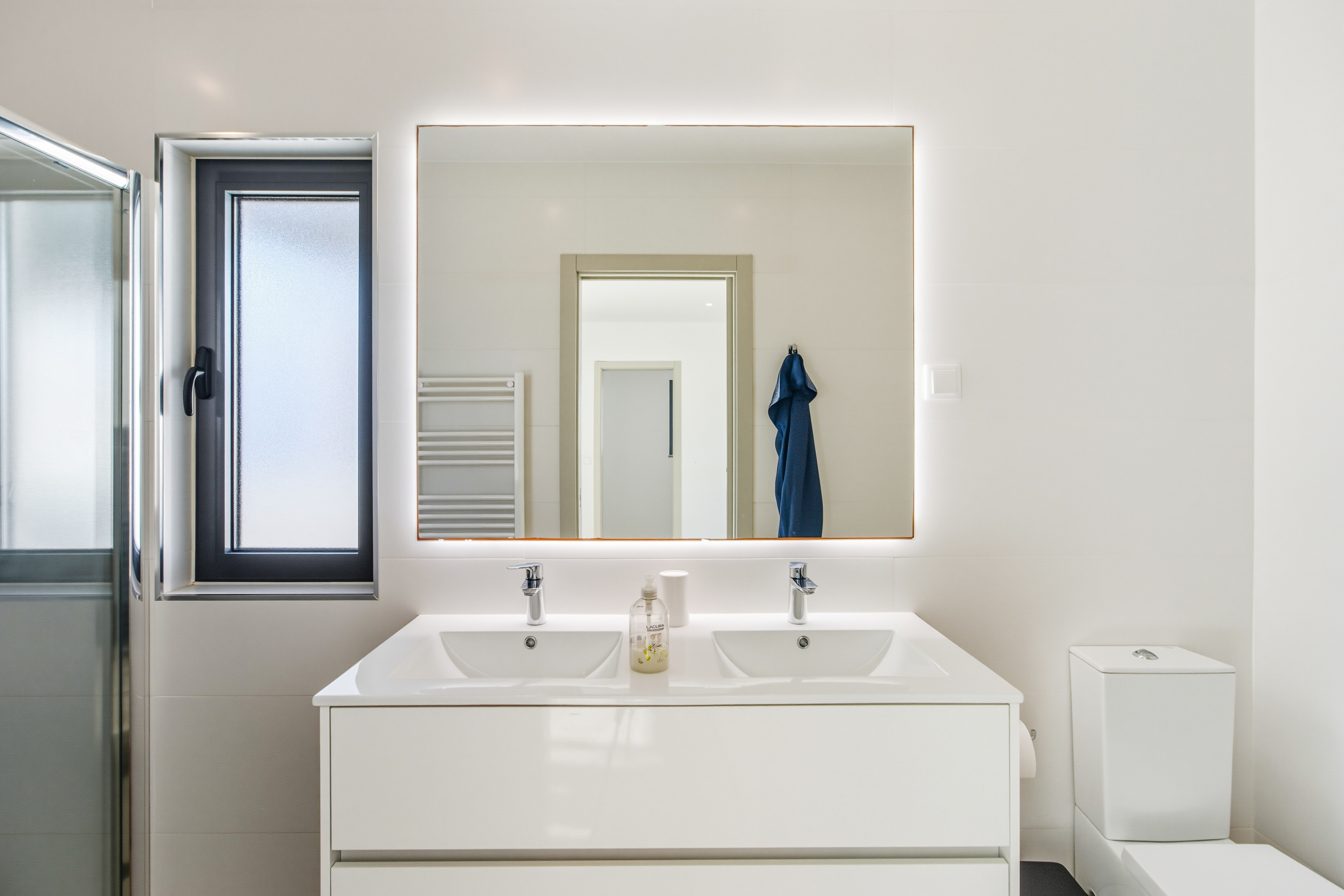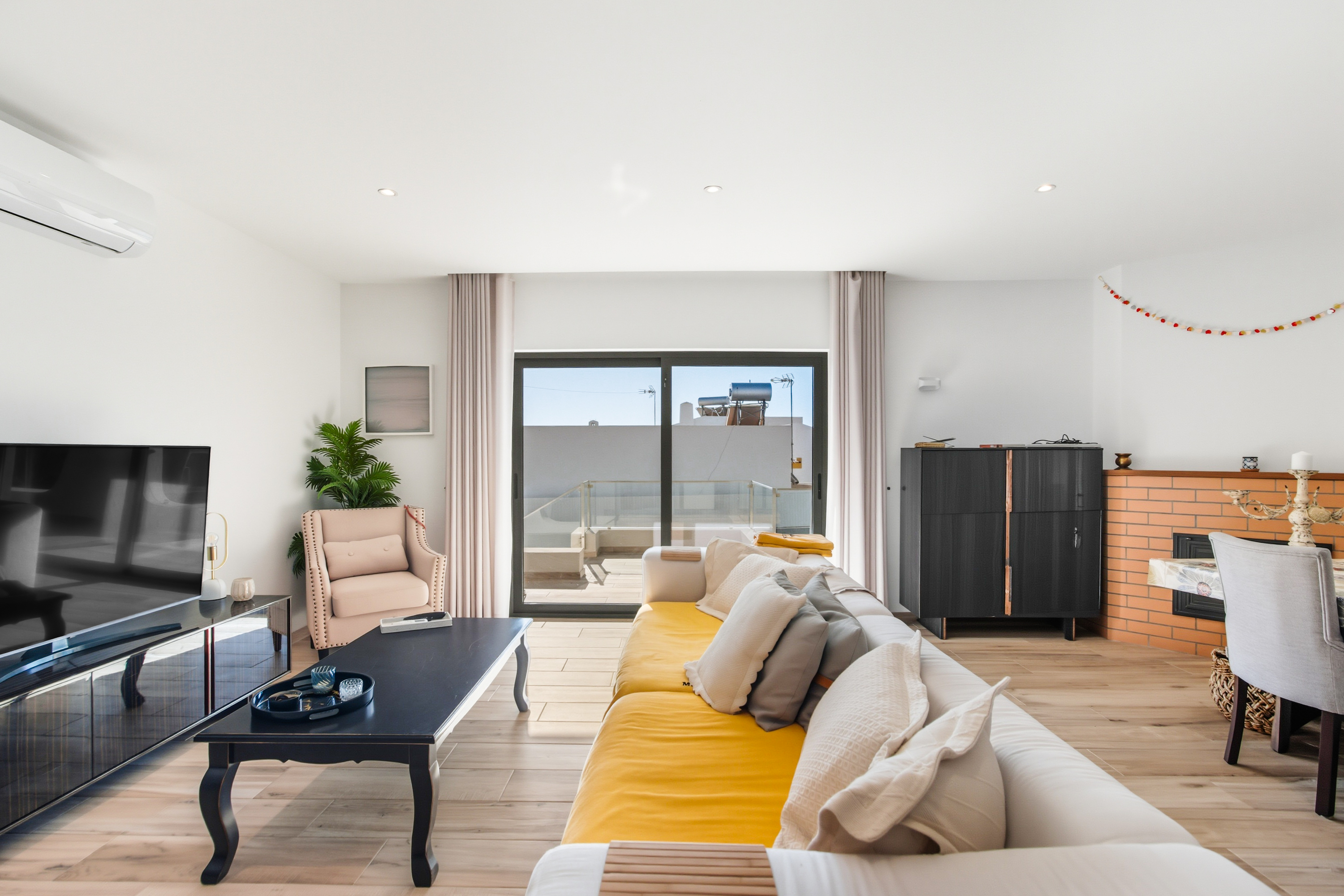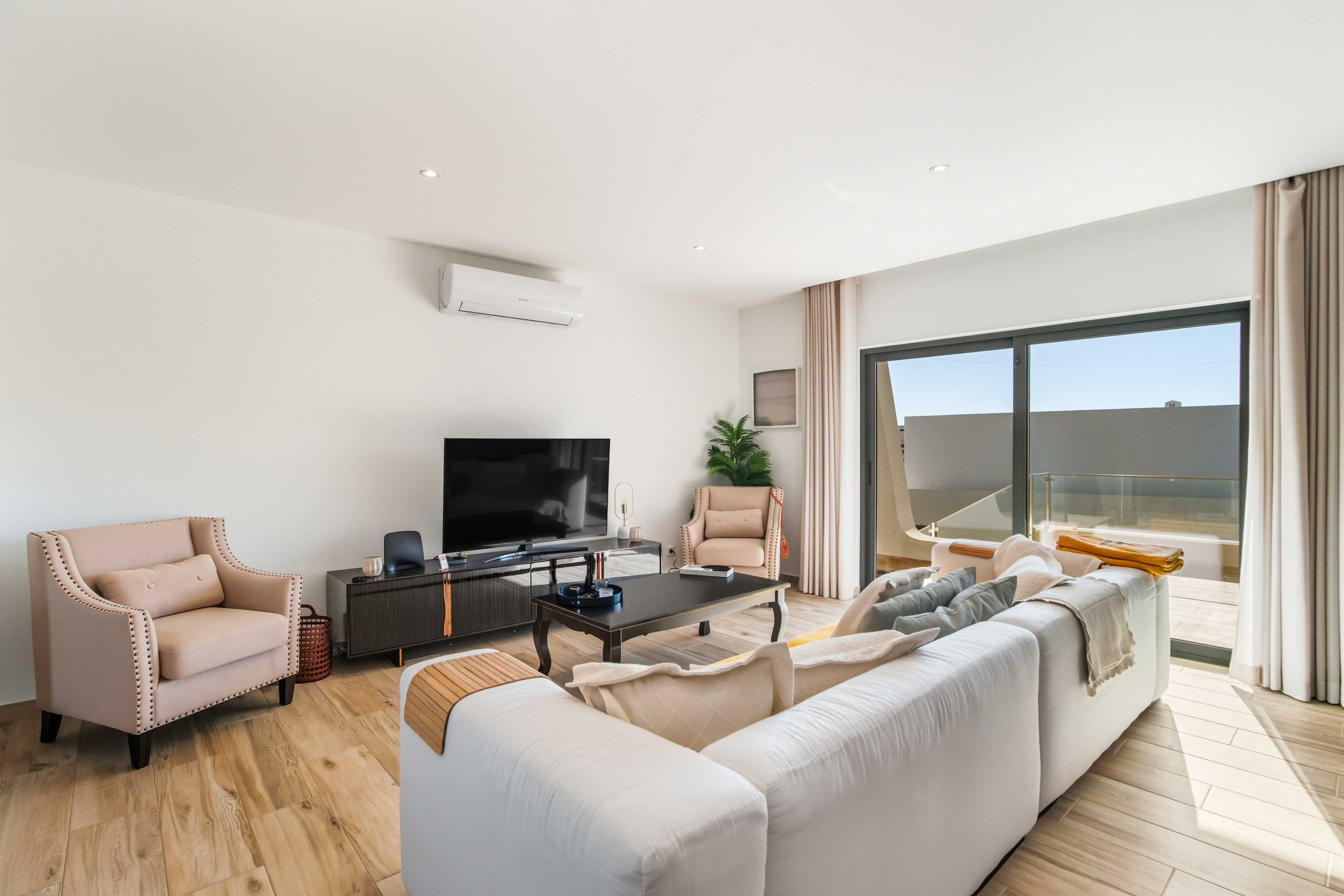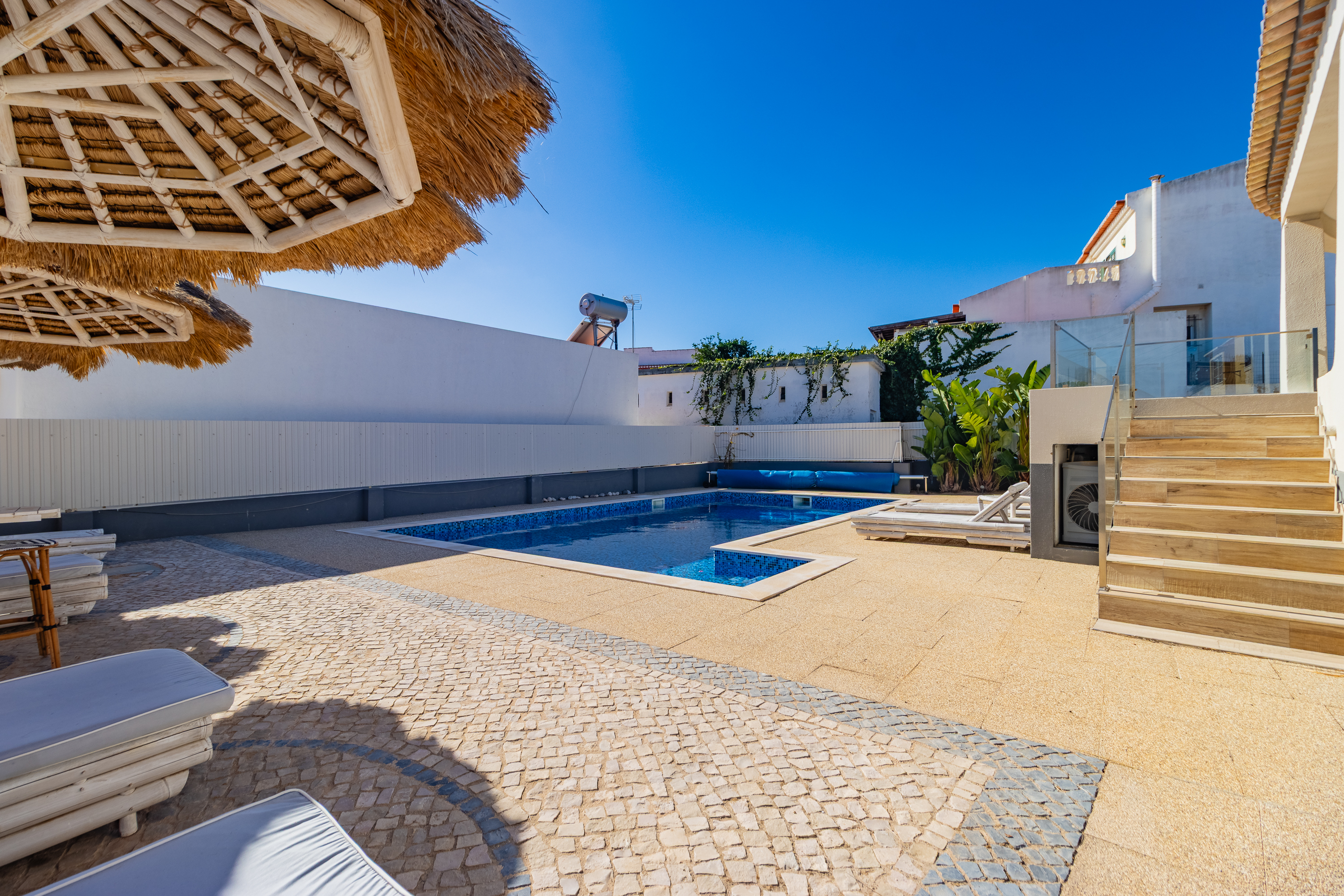Designed for year-round comfort, the villa is equipped with solar panels, air conditioning in all rooms and towel heaters in every bathroom.
