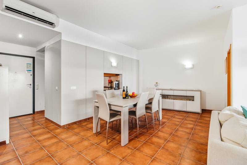 Depuis le salon, la chambre principale et la troisième chambre, il y a un accès direct à un grand balcon orienté sud-ouest, avec la lumière du soleil jusqu’à la fin de la journée, ce qui est idéal pour un dîner « en plein air ». La chambre principale a un lit double, la deuxième chambre a 2 lits simples et la troisième chambre a un canapé-lit.