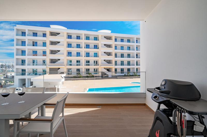 Luxury 1 bed Apartment in the brand new Adega Development in Lagos. With capacity up to 4 guests, outdoor pool, indoor pool, gym, high speed internet and within 10 minutes walking distance of both Lagos Marina and the old town.