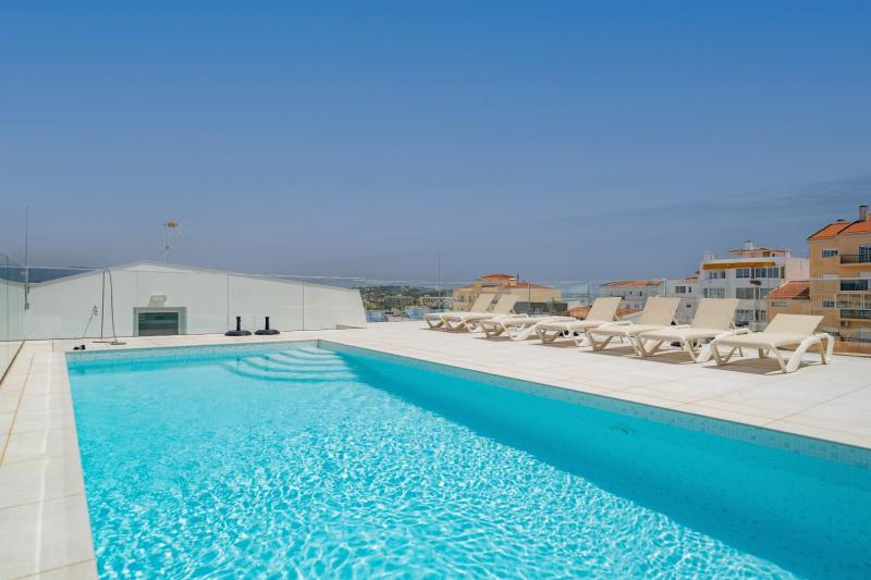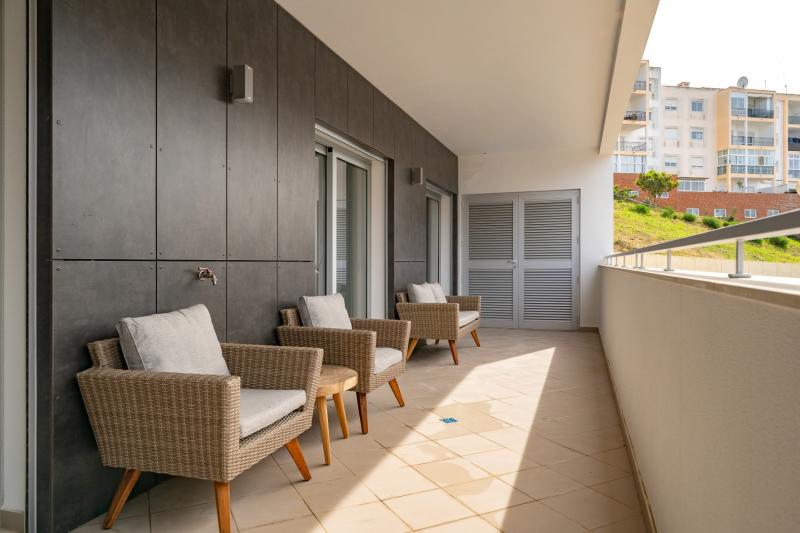 The dining area doubles as a perfect workspace, where you can catch up on emails or enjoy a leisurely meal. After a day of exploring the Portuguese coast, the living room invites you to relax and unwind with your favorite TV shows. The apartment features two well-lit and comfortable bedrooms, each with double beds, built-in storage, and access to a private balcony. With full air conditioning and Wi-Fi available throughout the property, you’ll stay cool and connected during your stay.