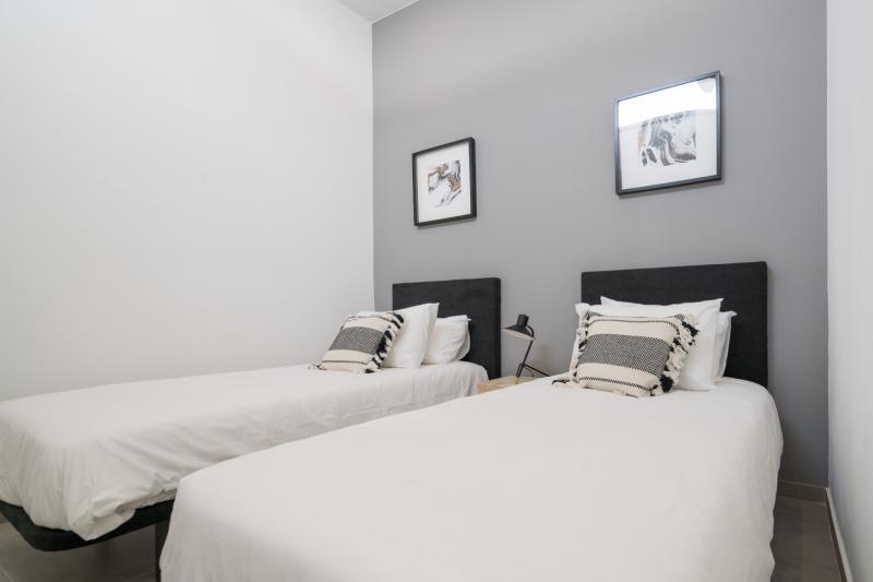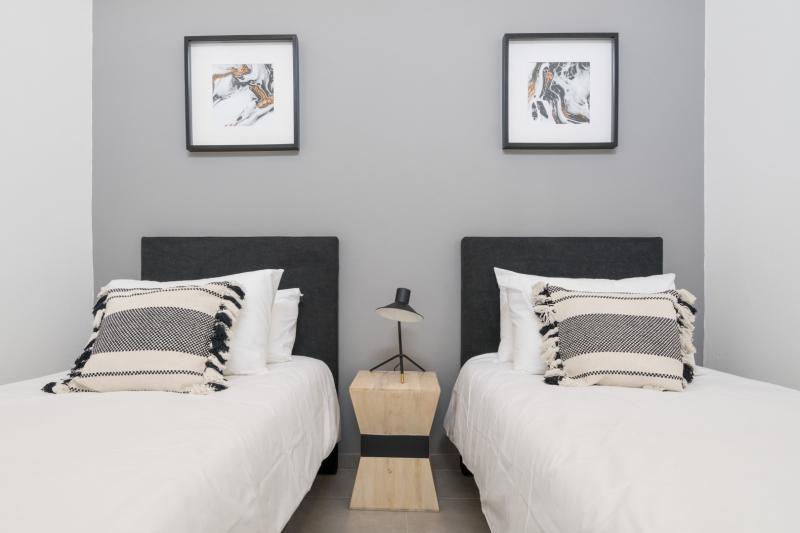 A l’étage, est un espace ouvert, salon, salle à manger et espace cuisine, idéal pour les invités à se rencontrer. Avec la chambre principale, il y a une chambre à deux lits et une salle d’eau familiale.